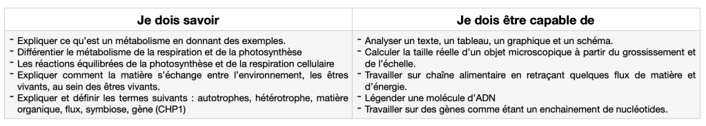 •Métabolisme : Ensemble de transformation biochimique se produisant dans les cellules d’un organisme. •Photosynthèse : ensemble des voies métaboliques qui conduisent à la production de matière organique, à partir de matière minérale et d’énergie lumineuse.