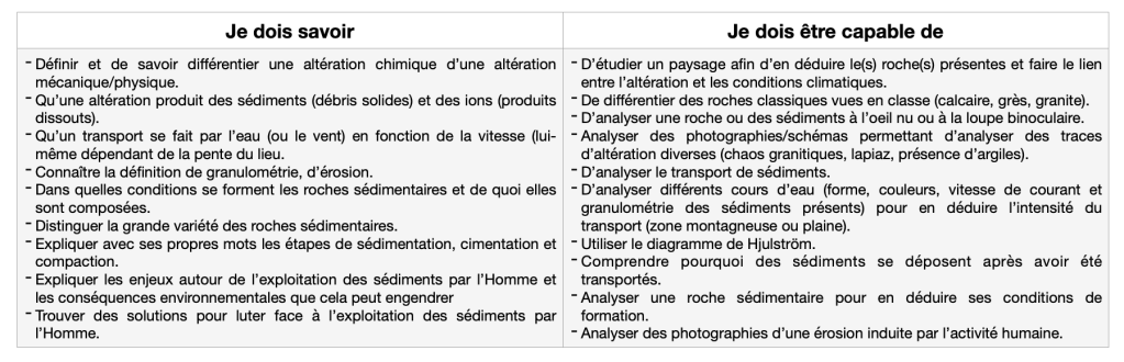 Les roches sédimentaires sont formées de deux composants majeurs : « des grains ou sédiments » issus de l’érosion (=altération + transport des sédiments) et d’un ciment. Ce dernier rend les grains jointifs entre eux.